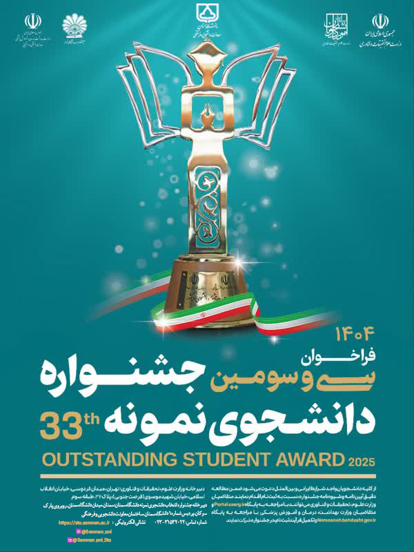 فراخوان سی و سومین جشنواره دانشجوی نمونه 1404/07/16 - 10:15 تعداد بازدید: 17 خبر مذکور در سایت و کانال معاونت دانشجویی و فرهنگی به نشانی زیر درج شده است. سایت: https://stu.semnan.ac.ir/ZVRa کانال: https://eitaa.com/Semnan_uni_Stu کلمات کلیدی